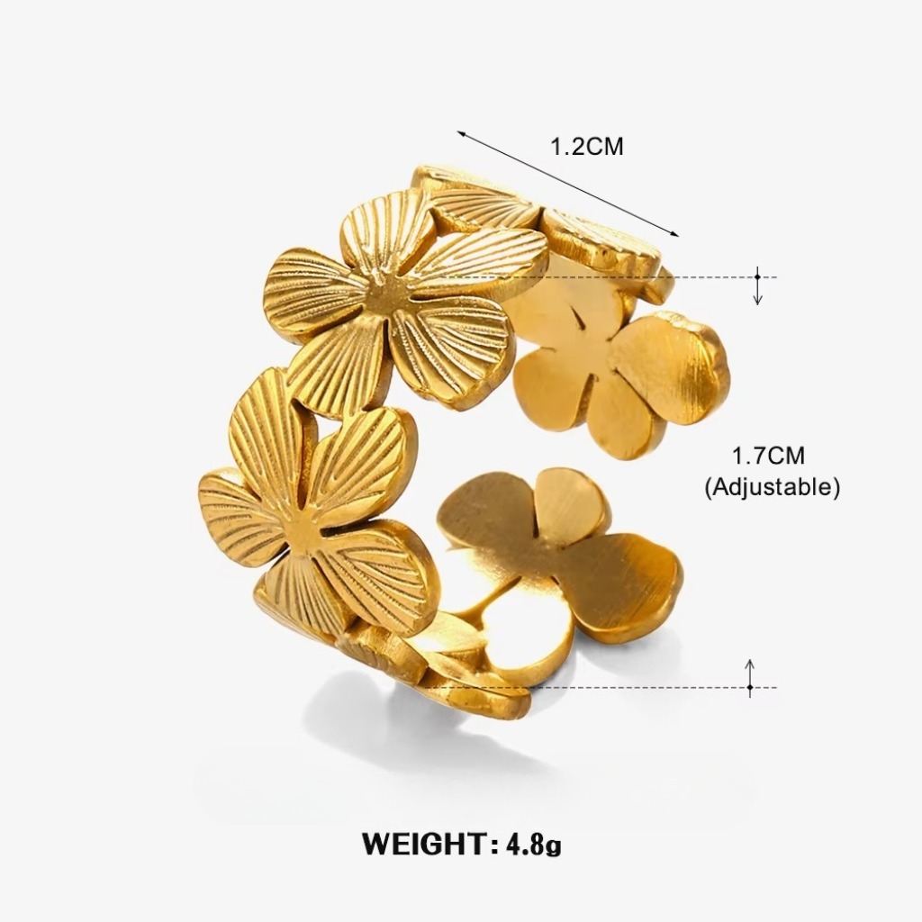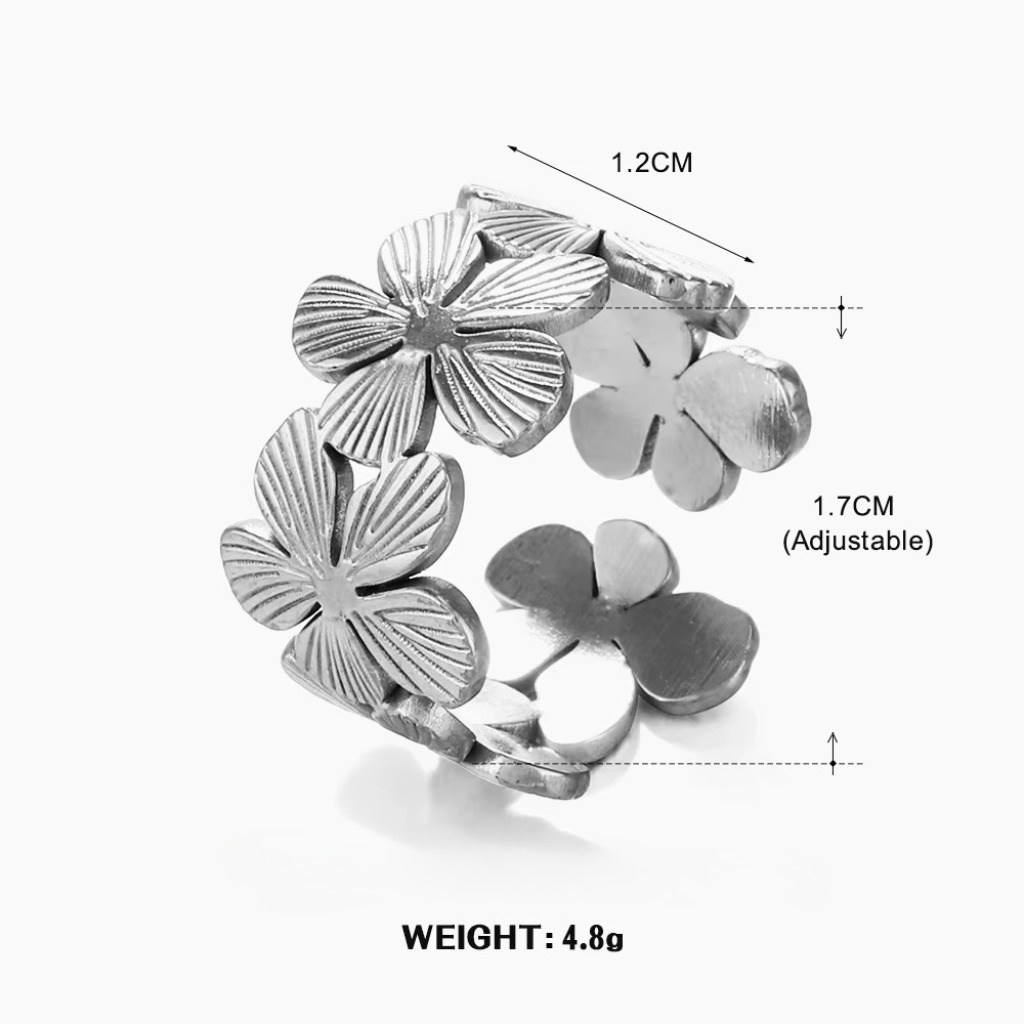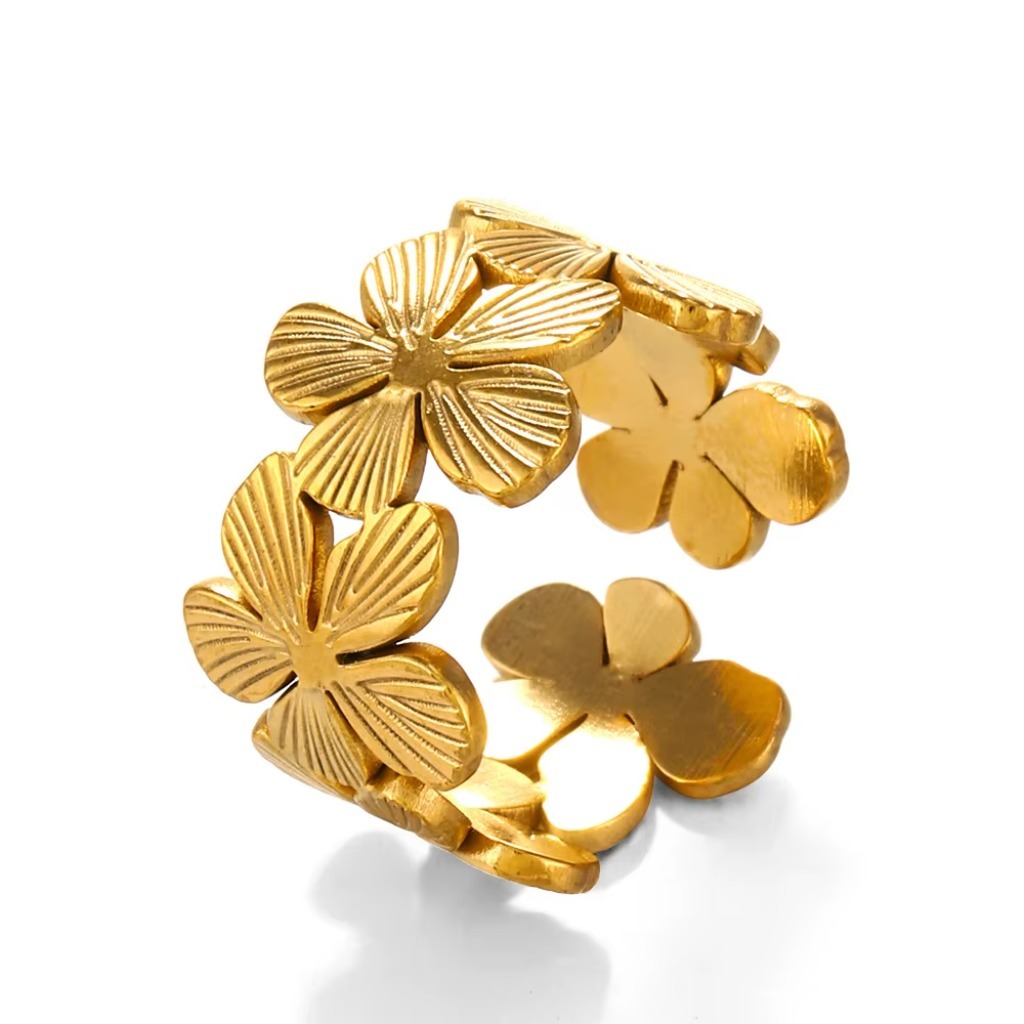 The ring showcases finely crafted petals and leaves, offering a sophisticated, garden-fresh aesthetic.